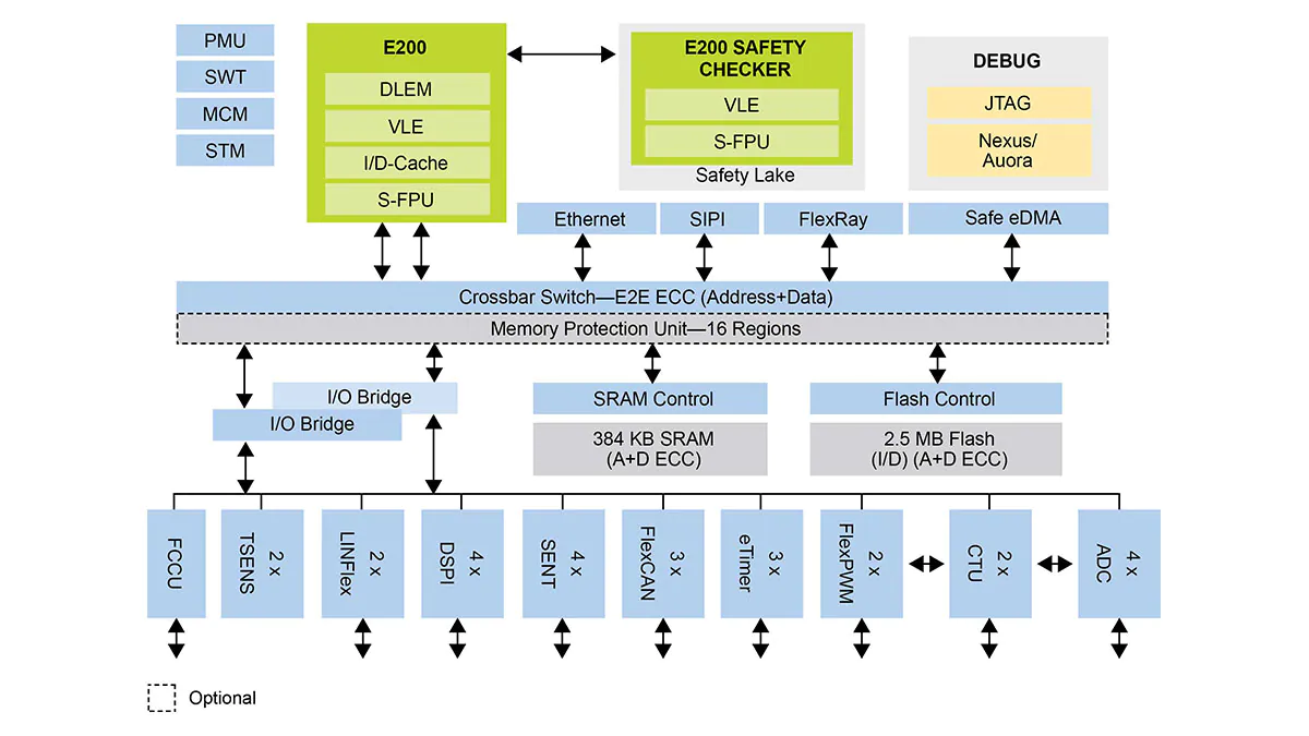 SPC5744PGK1AMMM9 integrated safety architecture minimises the amount of new software added and reduces changes in the development process.